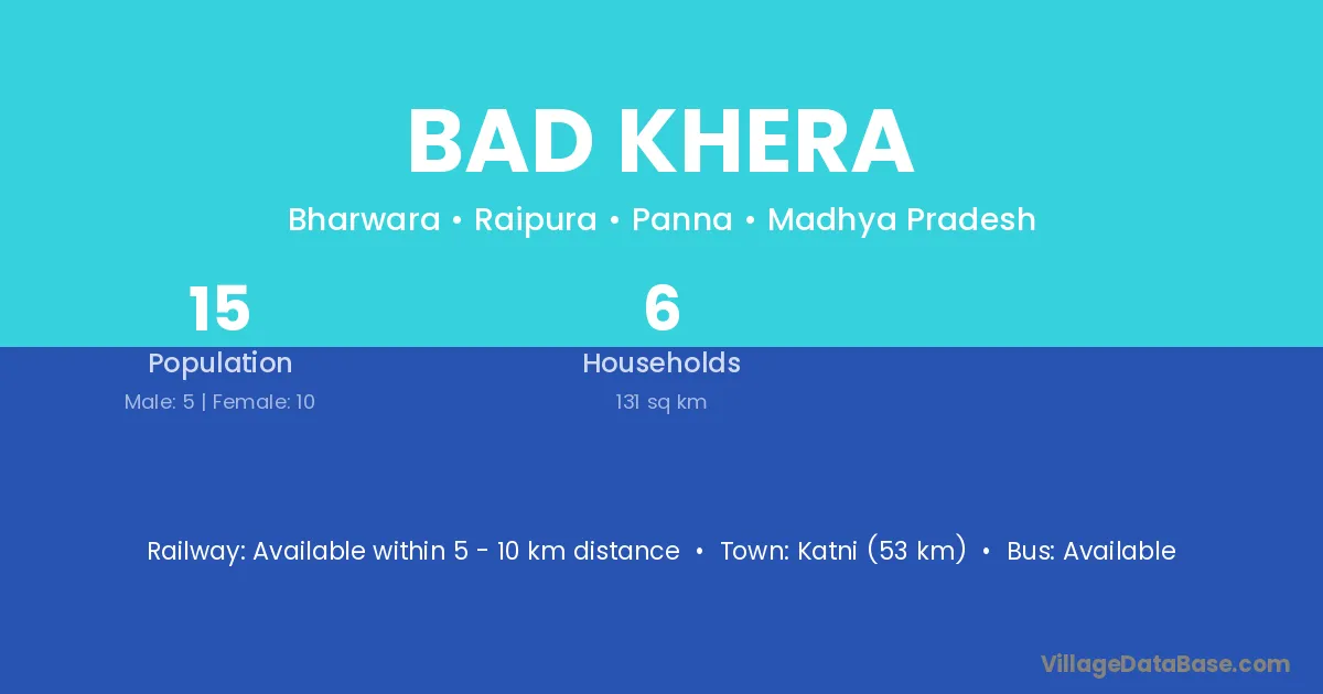 Bad Khera village has a total population of 15 people, of which 5 are males and 10 are females.