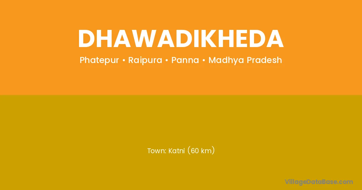Katni (60 km) is the nearest town to Dhawadikheda village for major economic activities and is located approximately 60 km away.