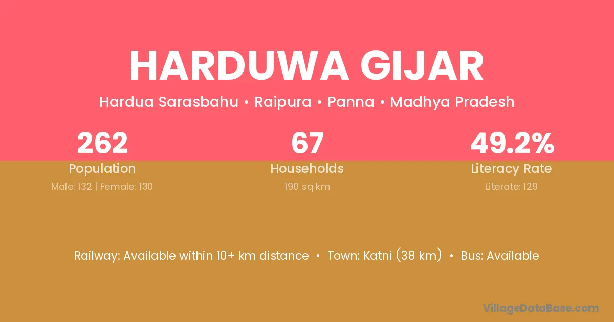 Harduwa Gijar village has a total population of 262 people, of which 132 are males and 130 are females.