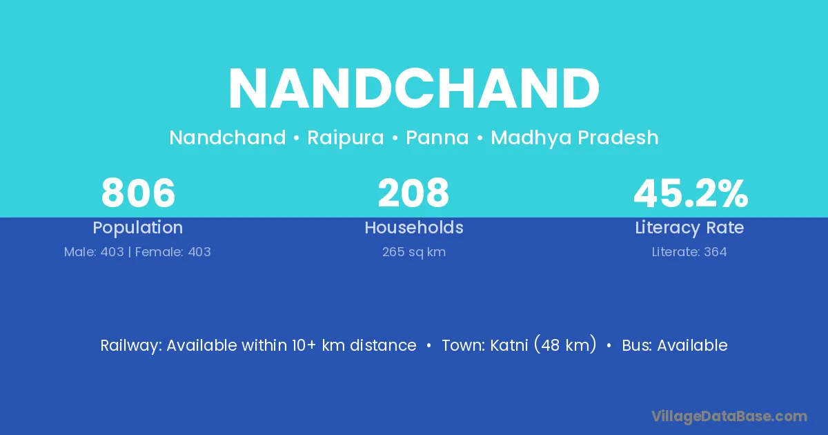 Katni (48 km) is the nearest town to Nandchand village for major economic activities and is located approximately 48 km away.