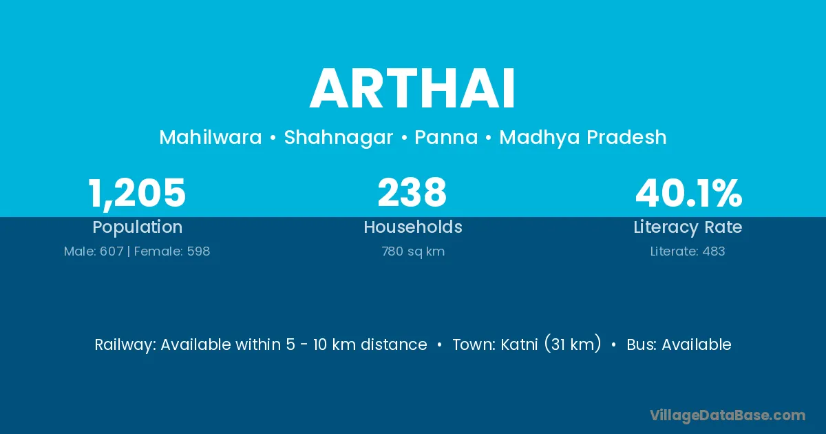 Katni (31 km) is the nearest town to Arthai village for major economic activities and is located approximately 31 km away.