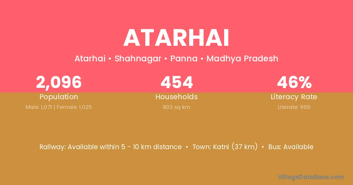 Katni (37 km) is the nearest town to Atarhai village for major economic activities and is located approximately 37 km away.