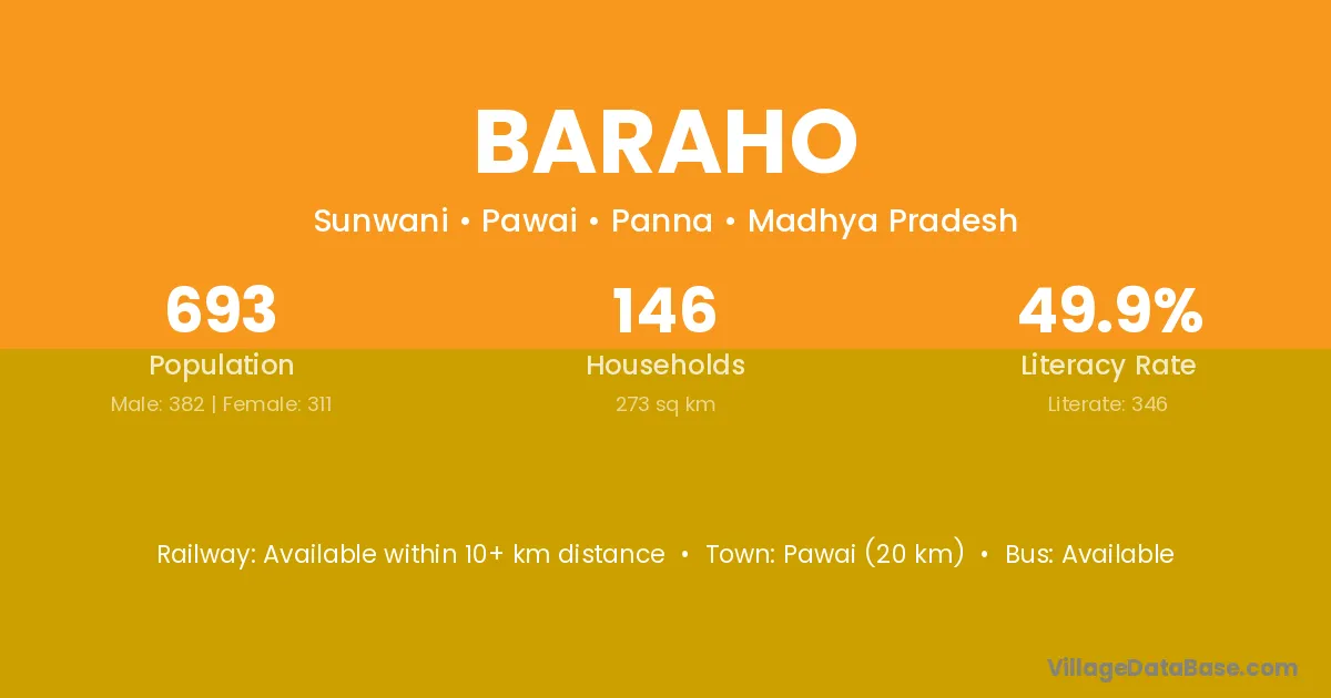 Katni (7 km) is the nearest town to Baraho village for major economic activities and is located approximately 7 km away.