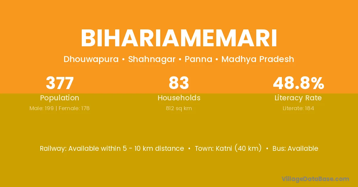 Katni (40 km) is the nearest town to Bihariamemari village for major economic activities and is located approximately 40 km away.