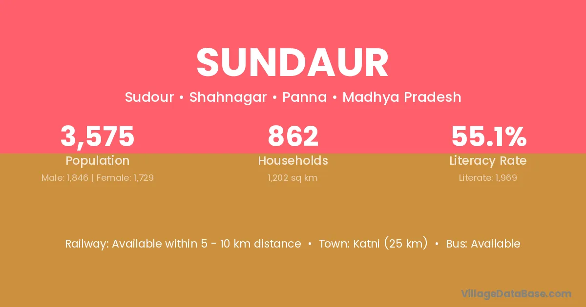 Katni (25 km) is the nearest town to Sundaur village for major economic activities and is located approximately 25 km away.