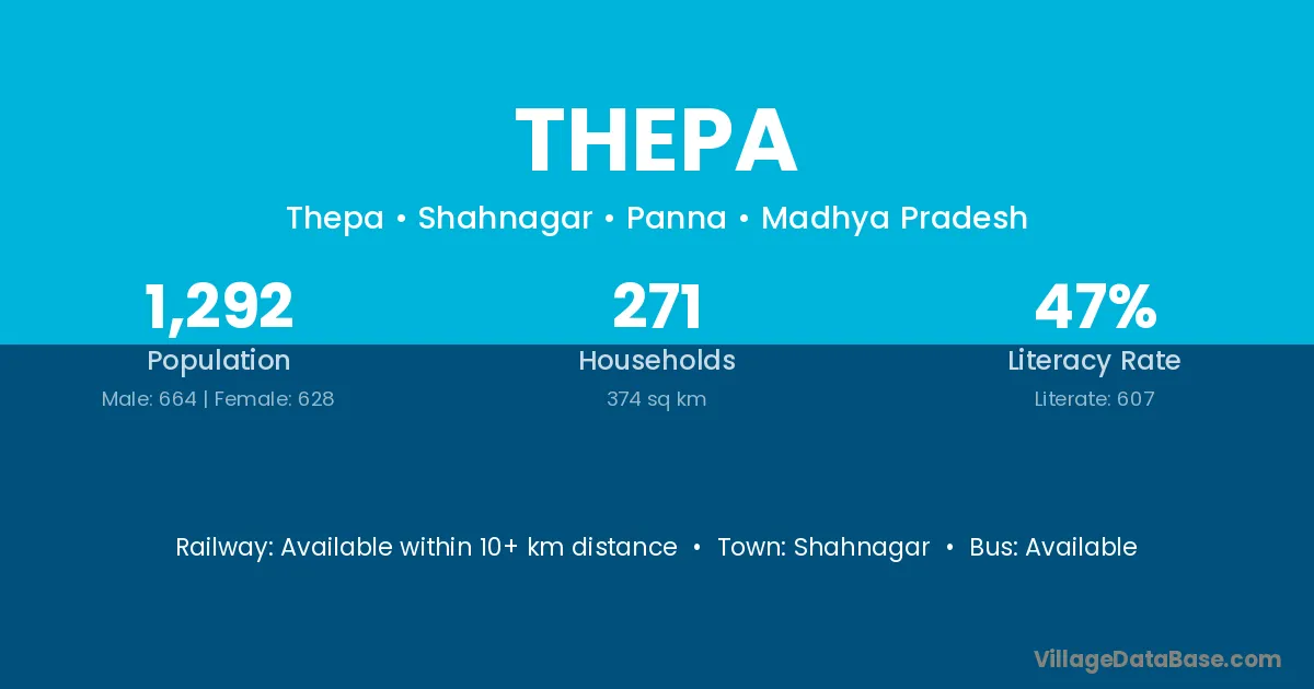 Thepa village has a total population of 1,292 people, of which 664 are males and 628 are females.