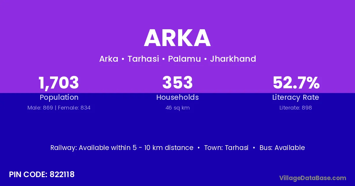 Arka village has a total population of 354 people, of which 192 are males and 162 are females.