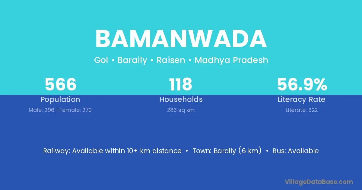 Sultanpur (15 km) is the nearest town to Bamanwada village for major economic activities and is located approximately 15 km away.