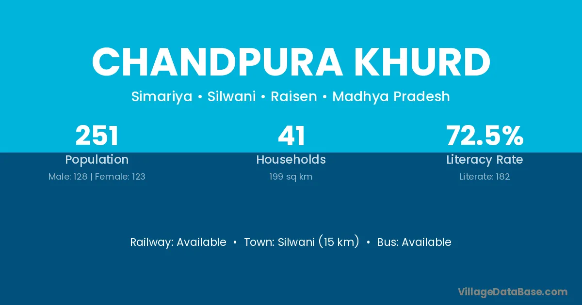 The literacy rate of Chandpura Khurd village is 69.77%. Male literacy stands at 80.43% and female literacy at 57.50%.