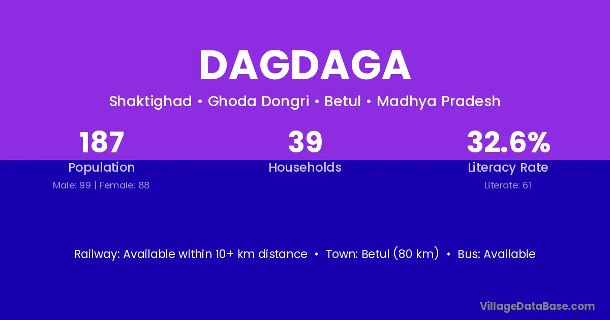 Badi (15 km) is the nearest town to Dagdaga village for major economic activities and is located approximately 15 km away.