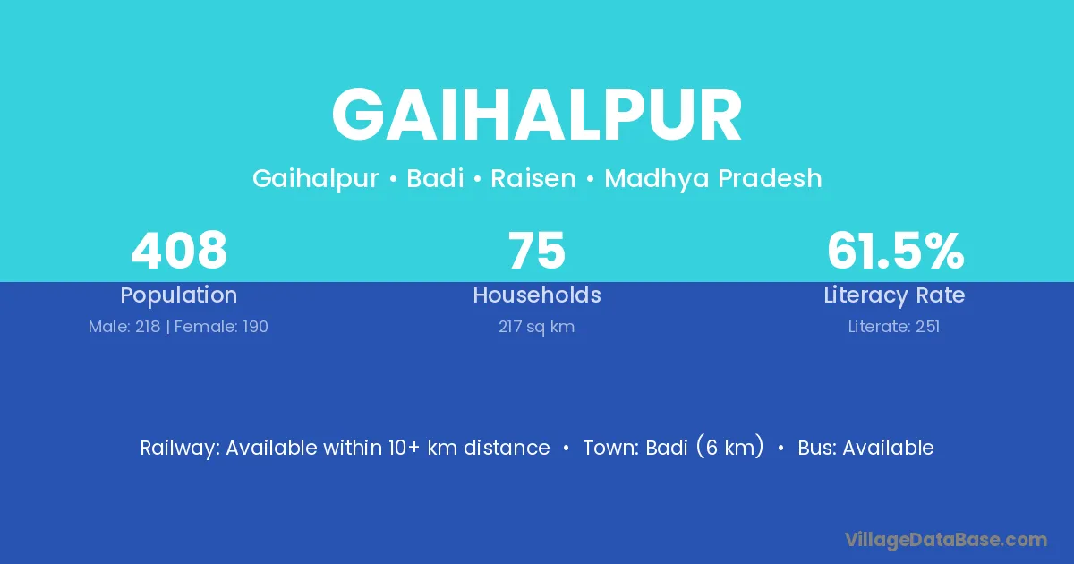 Gaihalpur village has a total population of 408 people, of which 218 are males and 190 are females.