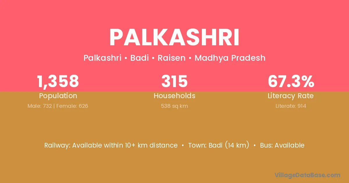 Palkashri village has a total population of 1,358 people, of which 732 are males and 626 are females.