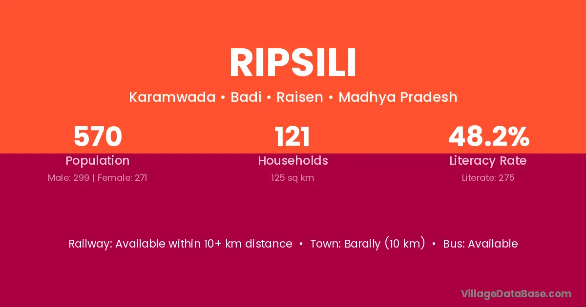 Baraily (10 km) is the nearest town to Ripsili village for major economic activities and is located approximately 10 km away.