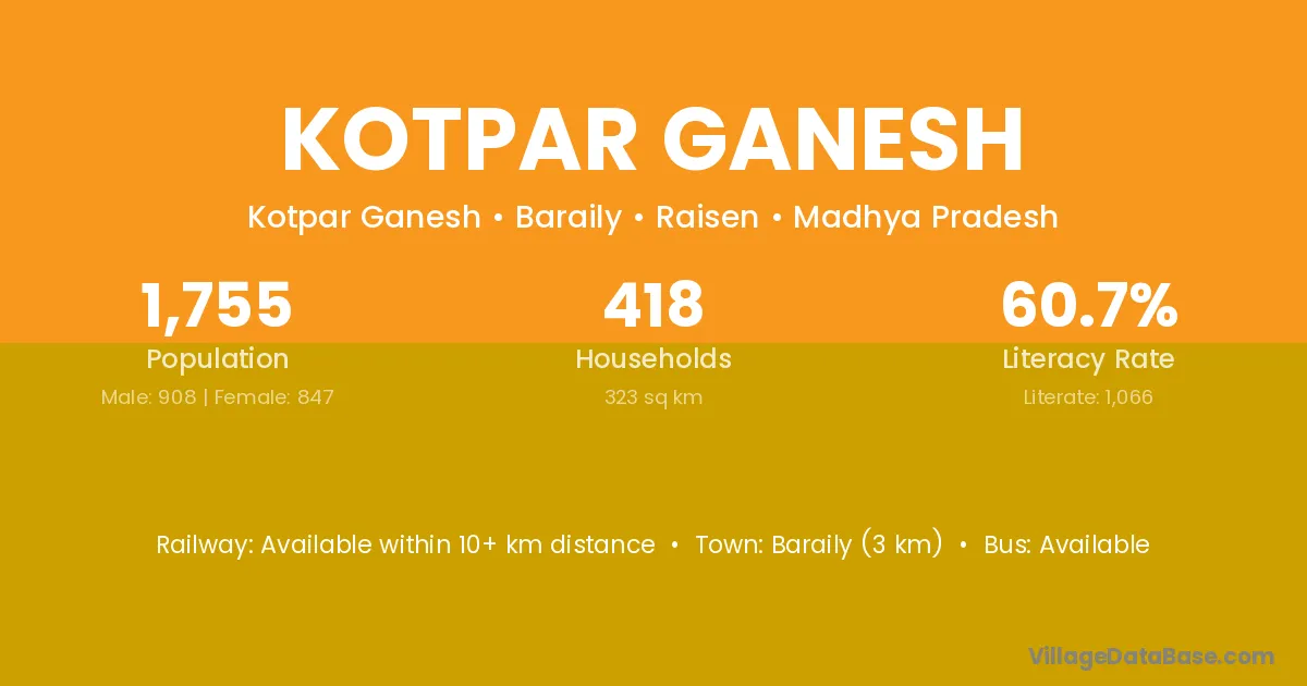 Baraily (3 km) is the nearest town to Kotpar Ganesh village for major economic activities and is located approximately 3 km away.