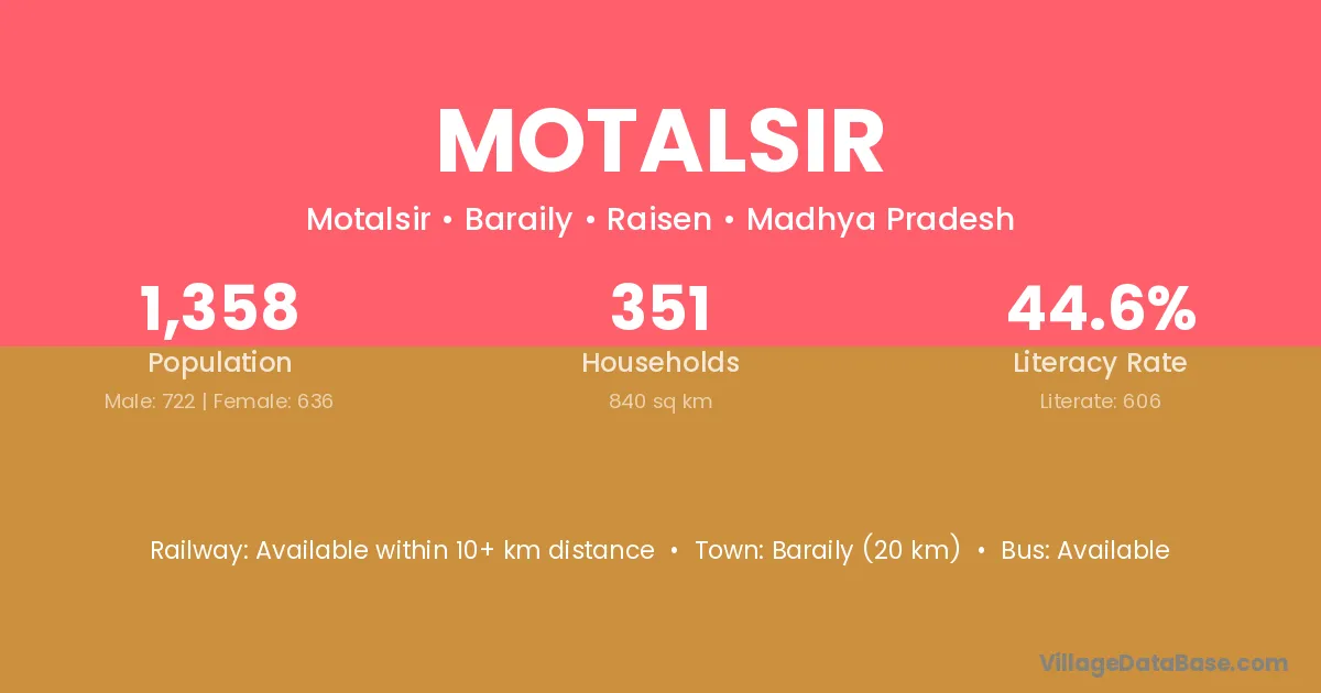 Motalsir village has a total population of 1,358 people, of which 722 are males and 636 are females.
