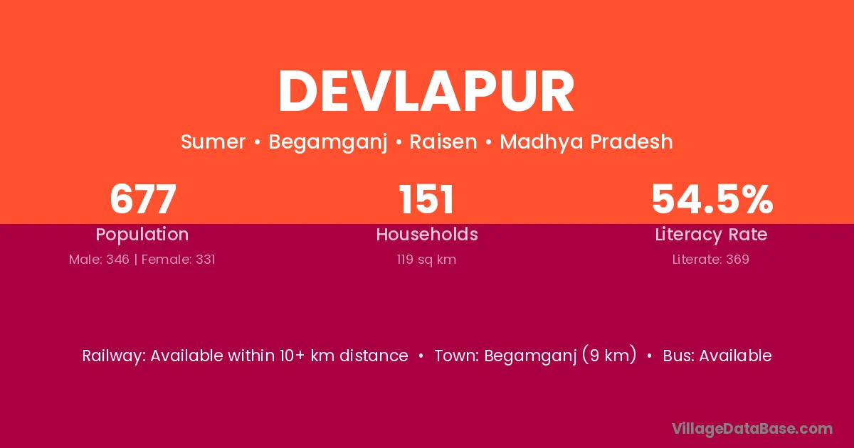 Begamganj (9 km) is the nearest town to Devlapur village for major economic activities and is located approximately 9 km away.