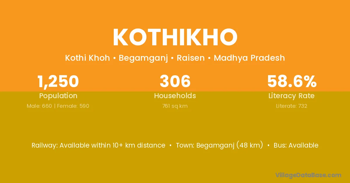 Begamganj (48 km) is the nearest town to Kothikho village for major economic activities and is located approximately 48 km away.