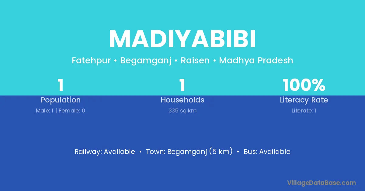 Begamganj (5 km) is the nearest town to Madiyabibi village for major economic activities and is located approximately 5 km away.