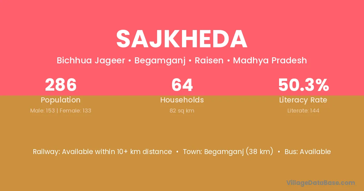 Begamganj (38 km) is the nearest town to Sajkheda village for major economic activities and is located approximately 38 km away.