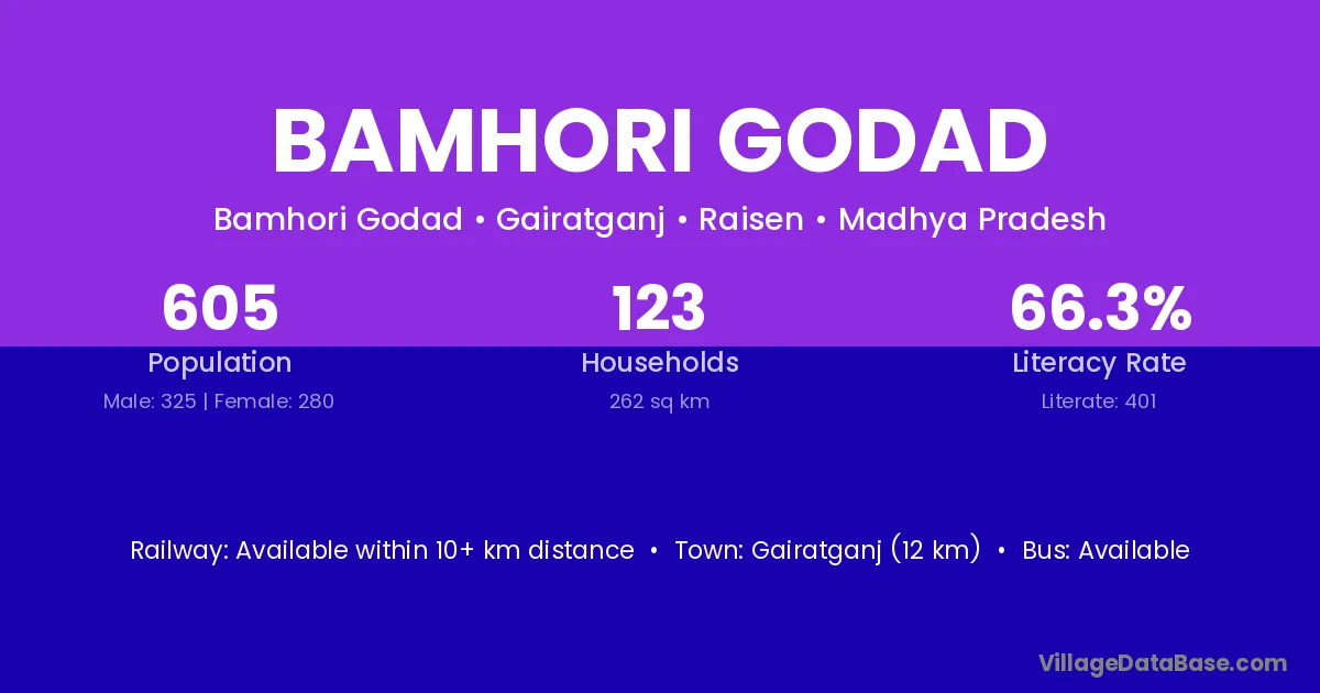 Gairatganj (12 km) is the nearest town to Bamhori Godad village for major economic activities and is located approximately 12 km away.