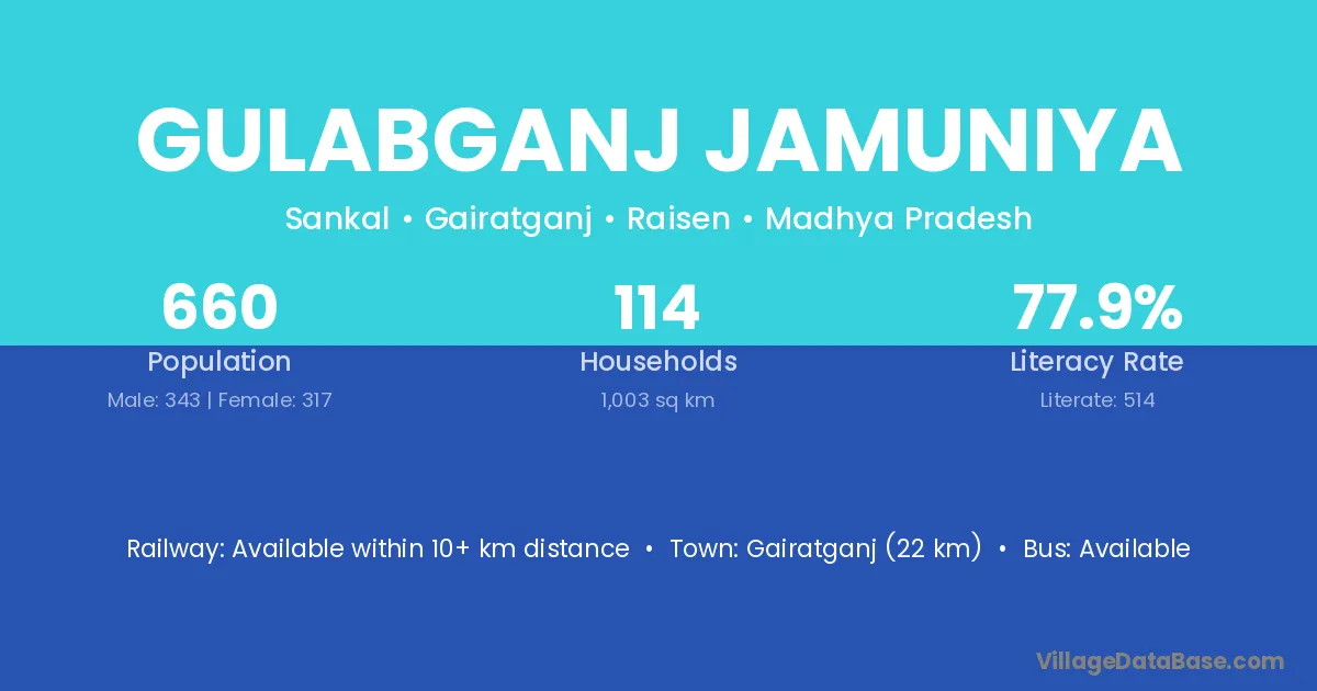 Gulabganj Jamuniya village has a total population of 660 people, of which 343 are males and 317 are females.