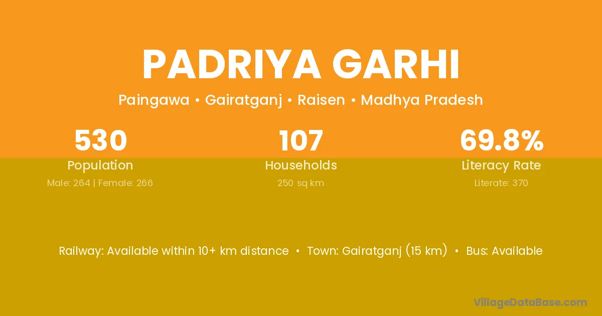 Padriya Garhi village has a total population of 530 people, of which 264 are males and 266 are females.