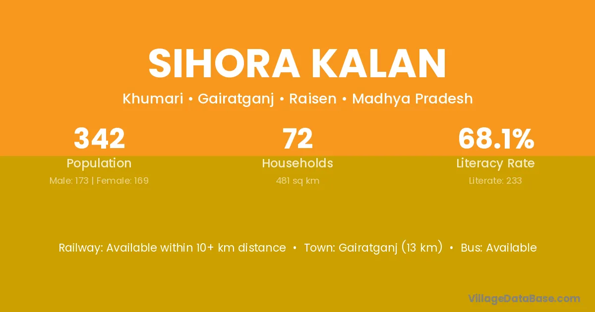 Gairatganj (13 km) is the nearest town to Sihora Kalan village for major economic activities and is located approximately 13 km away.