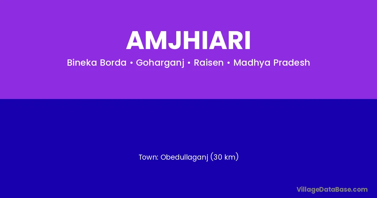 Obedullaganj (30 km) is the nearest town to Amjhiari village for major economic activities and is located approximately 30 km away.