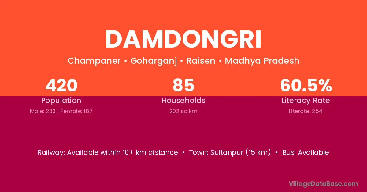 Damdongri village has a total population of 420 people, of which 233 are males and 187 are females.