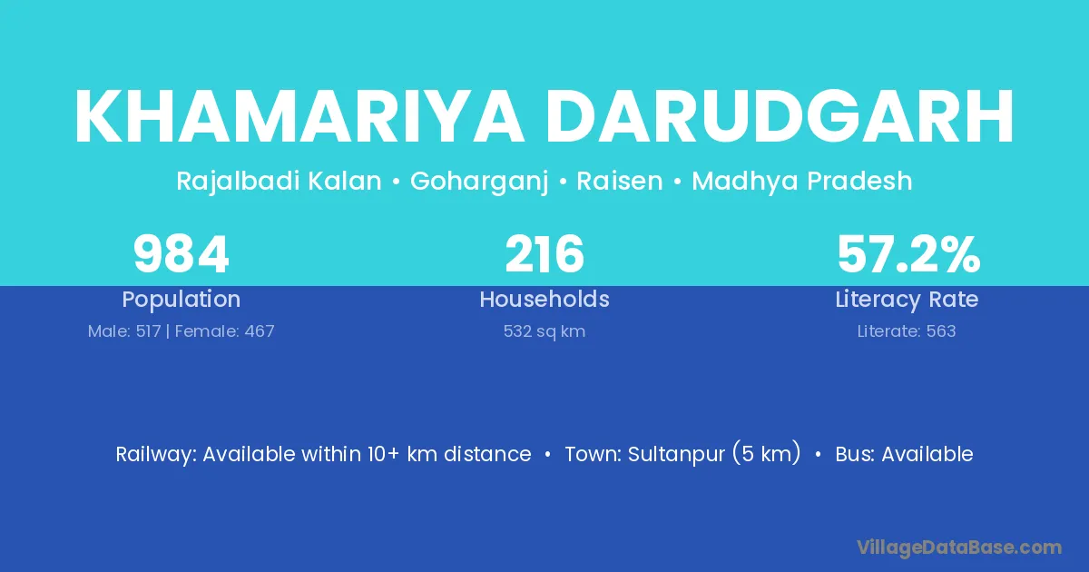 Sultanpur (5 km) is the nearest town to Khamariya Darudgarh village for major economic activities and is located approximately 5 km away.
