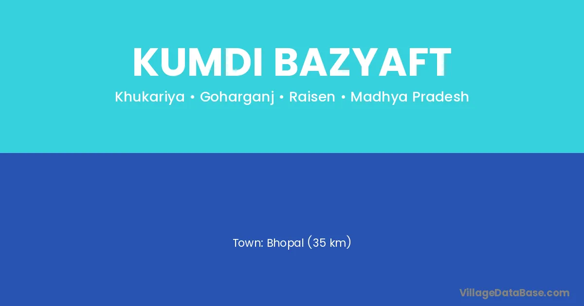 Bhopal (35 km) is the nearest town to Kumdi Bazyaft village for major economic activities and is located approximately 35 km away.
