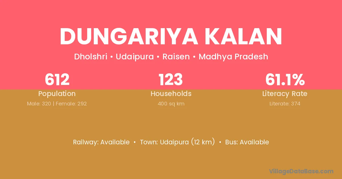 Dungariya Kalan village has a total population of 255 people, of which 135 are males and 120 are females.