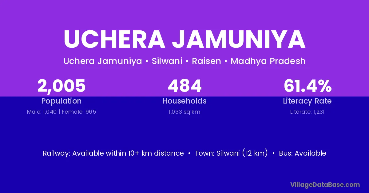 Silwani (12 km) is the nearest town to Uchera Jamuniya village for major economic activities and is located approximately 12 km away.