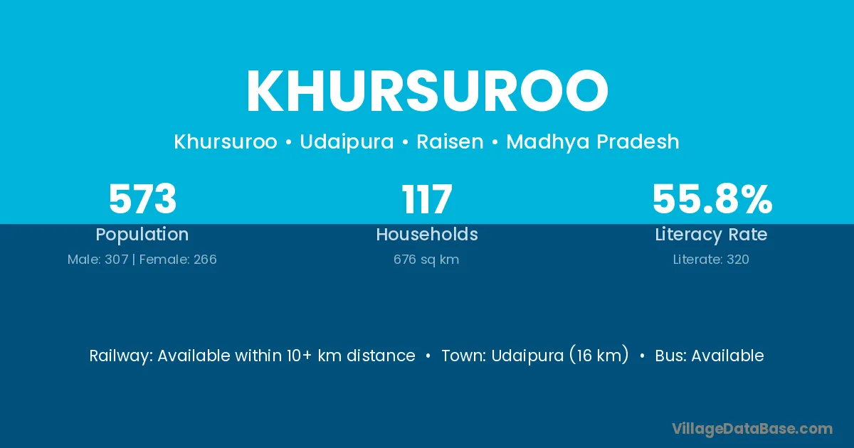 Khursuroo village has a total population of 573 people, of which 307 are males and 266 are females.