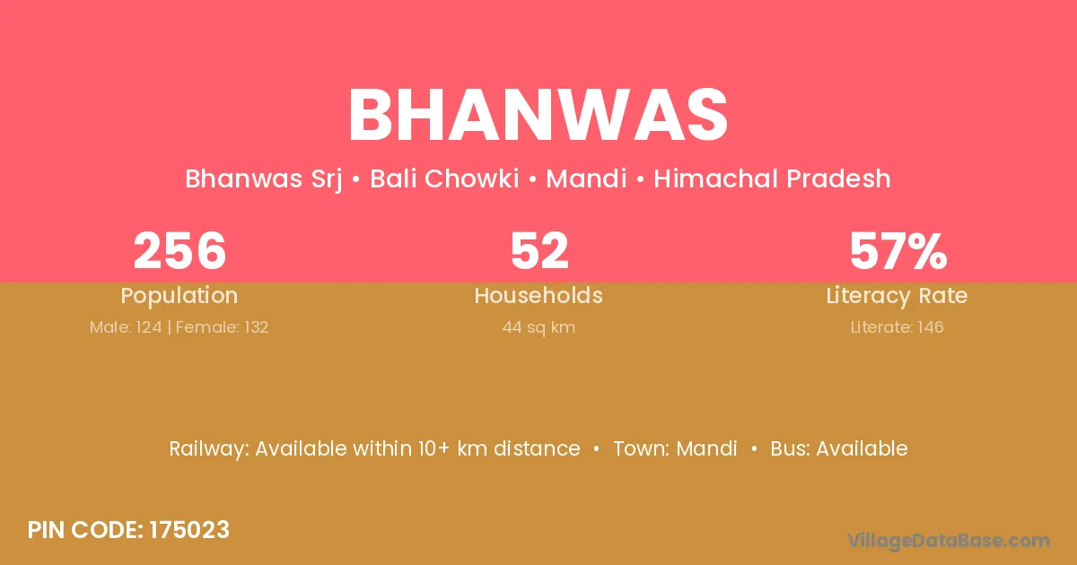 The literacy rate of Bhanwas village is 43.77%. Male literacy stands at 55.51% and female literacy at 31.61%.