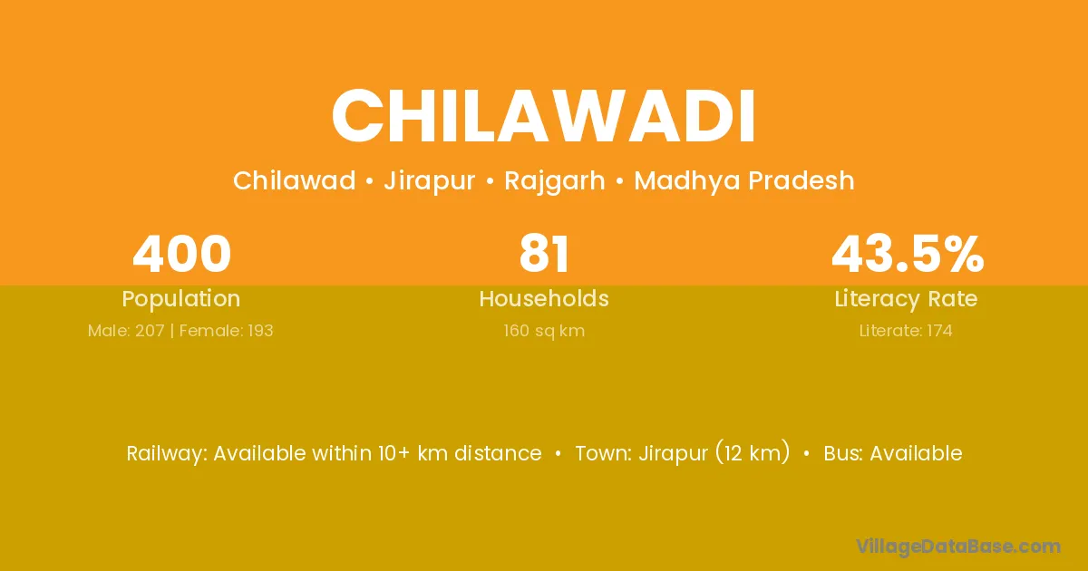 Chilawadi village has a total population of 400 people, of which 207 are males and 193 are females.