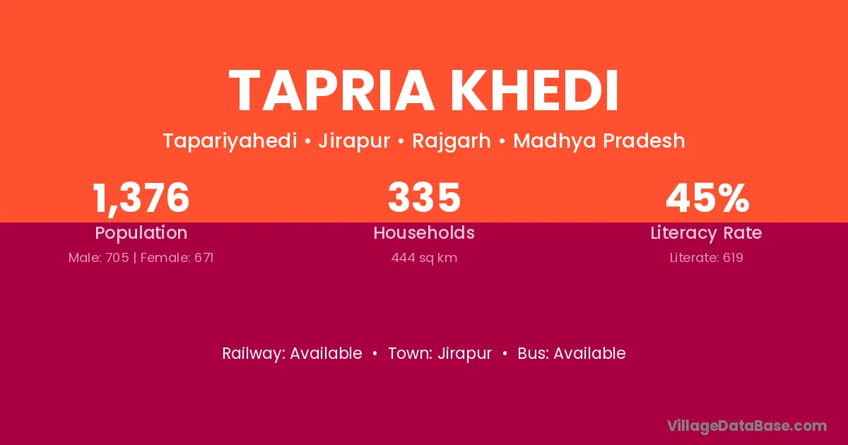 Jirapur is the nearest town to Tapria Khedi village for major economic activities