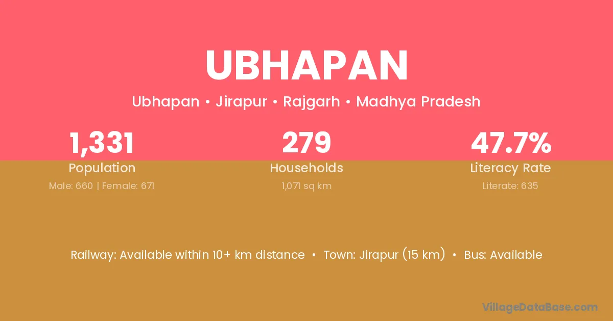 Jirapur (15 km) is the nearest town to Ubhapan village for major economic activities and is located approximately 15 km away.