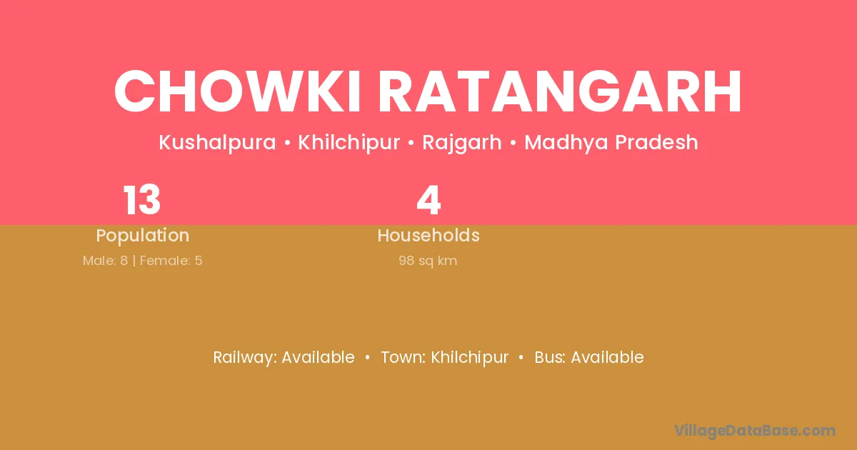 Khilchipur is the nearest town to Chowki Ratangarh village for major economic activities