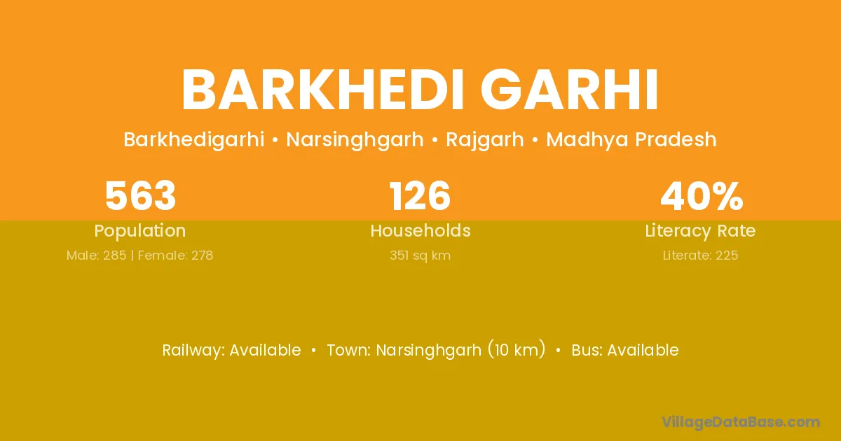Barkhedi Garhi village has a total population of 563 people, of which 285 are males and 278 are females.