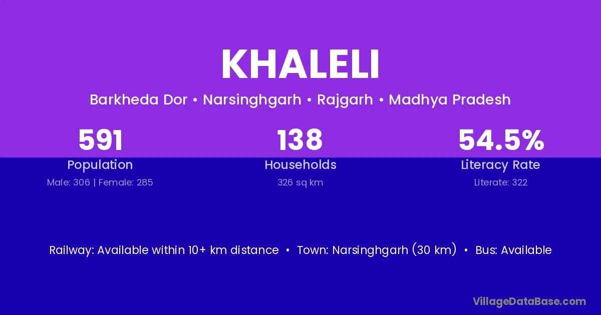 Narsinghgarh (30 km) is the nearest town to Khaleli village for major economic activities and is located approximately 30 km away.