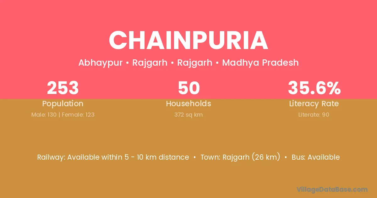 Rajgarh (26 km) is the nearest town to Chainpuria village for major economic activities and is located approximately 26 km away.