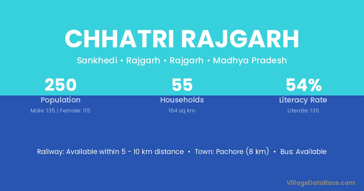 Pachore (8 km) is the nearest town to Chhatri Rajgarh village for major economic activities and is located approximately 8 km away.