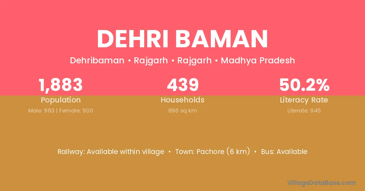 Pachore (6 km) is the nearest town to Dehri Baman village for major economic activities and is located approximately 6 km away.