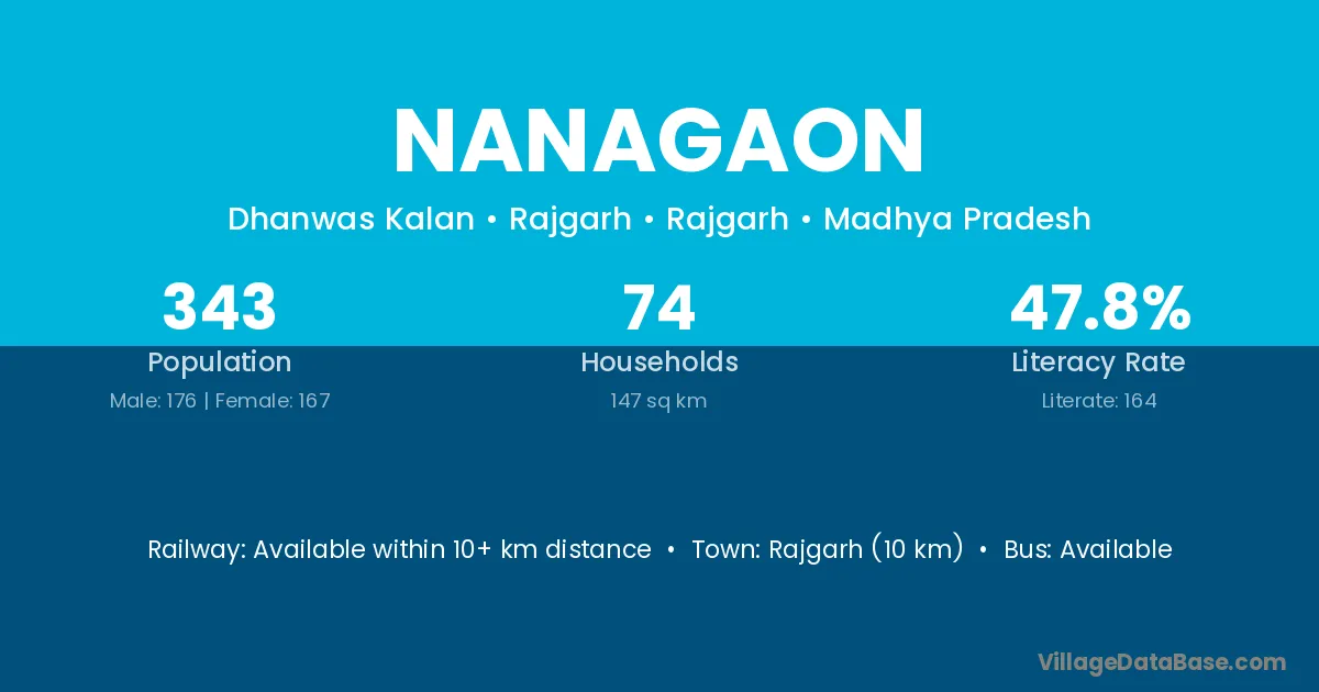 Rajgarh (10 km) is the nearest town to Nanagaon village for major economic activities and is located approximately 10 km away.
