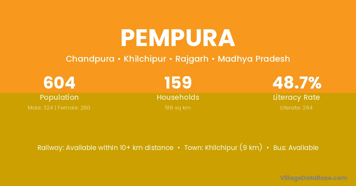 Rajgarh (24 km) is the nearest town to Pempura village for major economic activities and is located approximately 24 km away.