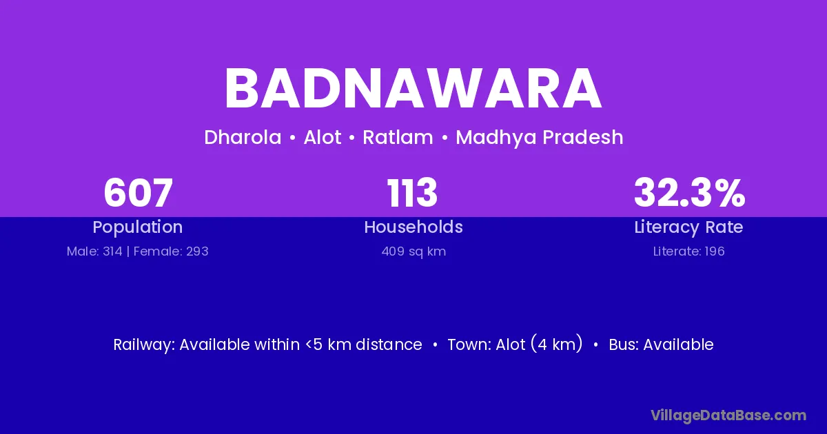 Alot (4 km) is the nearest town to Badnawara village for major economic activities and is located approximately 4 km away.