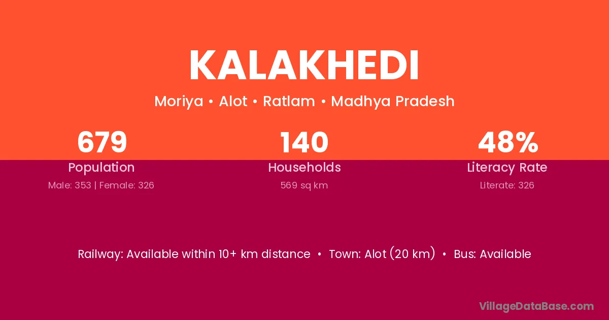 Kalakhedi village has a total population of 679 people, of which 353 are males and 326 are females.