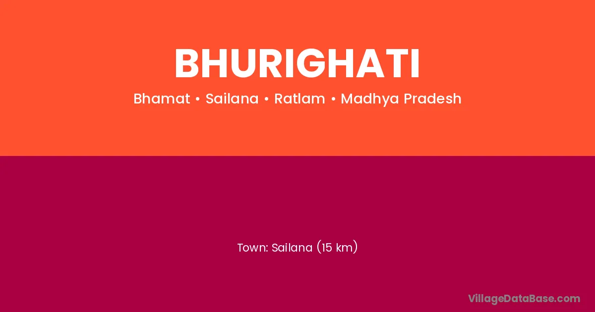 Ratlam (53 km) is the nearest town to Bhurighati village for major economic activities and is located approximately 53 km away.