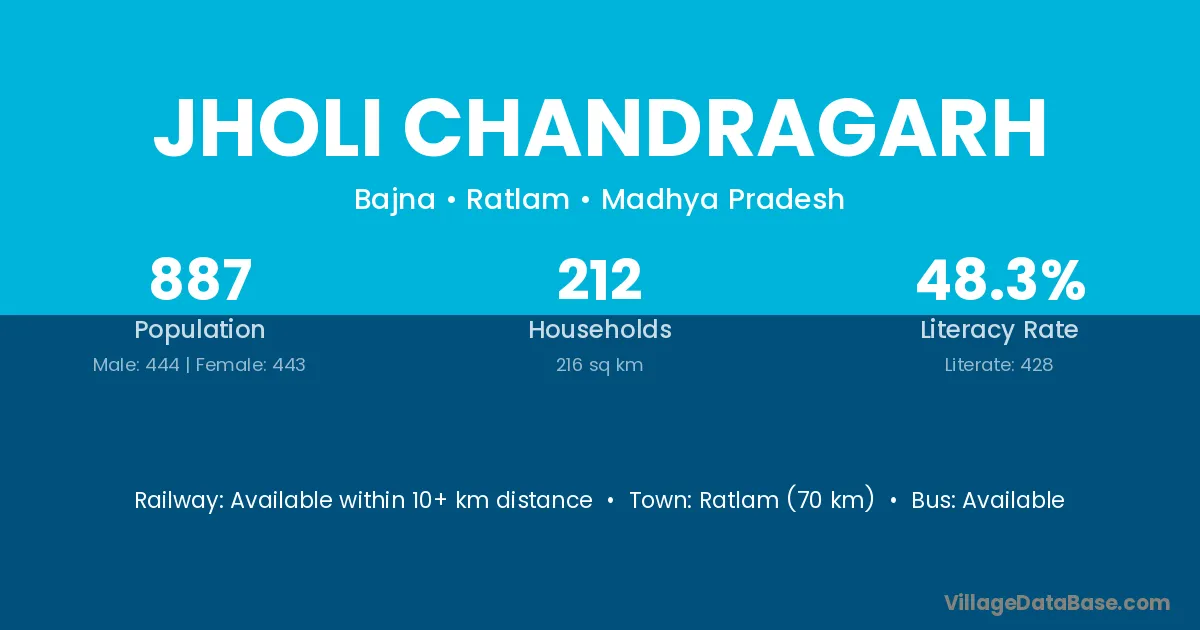 Ratlam (70 km) is the nearest town to Jholi Chandragarh village for major economic activities and is located approximately 70 km away.